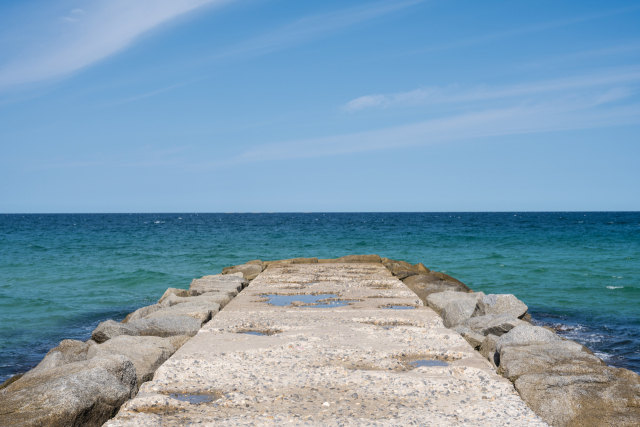 주문진 방사제는 드라마 ‘도깨비’ 속 감성적인 해변 풍경으로 국내외 관광객의 발길이 이어지는 대표 명소다.