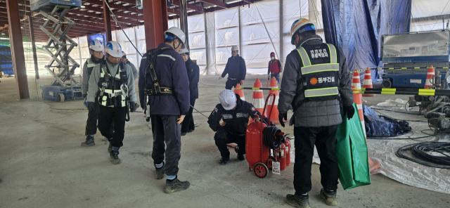 홍천소방서(서장:이강우)는 25일 남면 삼성메디슨 홍천공장 건설현장에서 안전 교육을 실시했다. 이날 소방서 관계자 5명과 군청 관계자 1명이 참석해 합동으로 임시소방시설 설치·관리 실태를 점검하고, 용접·용단 작업 시 화재예방수칙 등 주요 위험요인을 안내했다.