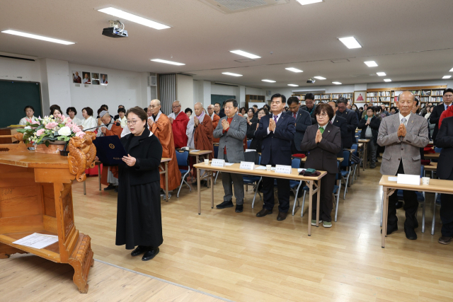 대한불교 조계종 제4교구 국행수륙도량 두타산 삼화사 부설 동해불교대학교 입학식(대학 25기, 대학원 18기)이 28일 삼화사 경내 불교대학 교육관에서 임법 주지스님, 이철규 국회의원, 심규언 동해시장, 민귀희 동해시의장 등이 참석한 가운데 열렸다.