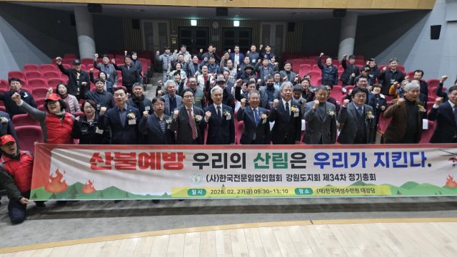 한국전문임업인협회 강원도지회 제34차 정기총회가 지난달 27일 강릉시옥계면 한국여성수련원에서 정호술 한국전문임업인협회 강원도지회장, 전대현 한국전문임업인협회장,최무열 한국임업진흥원장, 최수천 동부지방산림청장, 김상영 강릉부시장, 이광섭 강원특별자치도 산림정책과장, 송현호 산림조합중앙회 강원본부장 등 산림유관기관 100여명이 참석해 강원 임업 발전에 대해 논의했다.