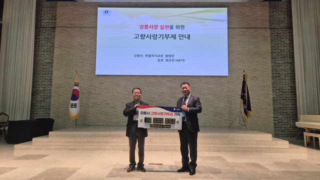 강릉제일고 서울 동창회(회장:한계현)는 지난 26일 서울 공군호텔에서 열린 서울동창회 정기총회에서 강릉시의 찾아가는 고향사랑기부제 홍보를 듣고 고향 강릉시에 고향사랑기부금 1,000만 원을 기탁했다.