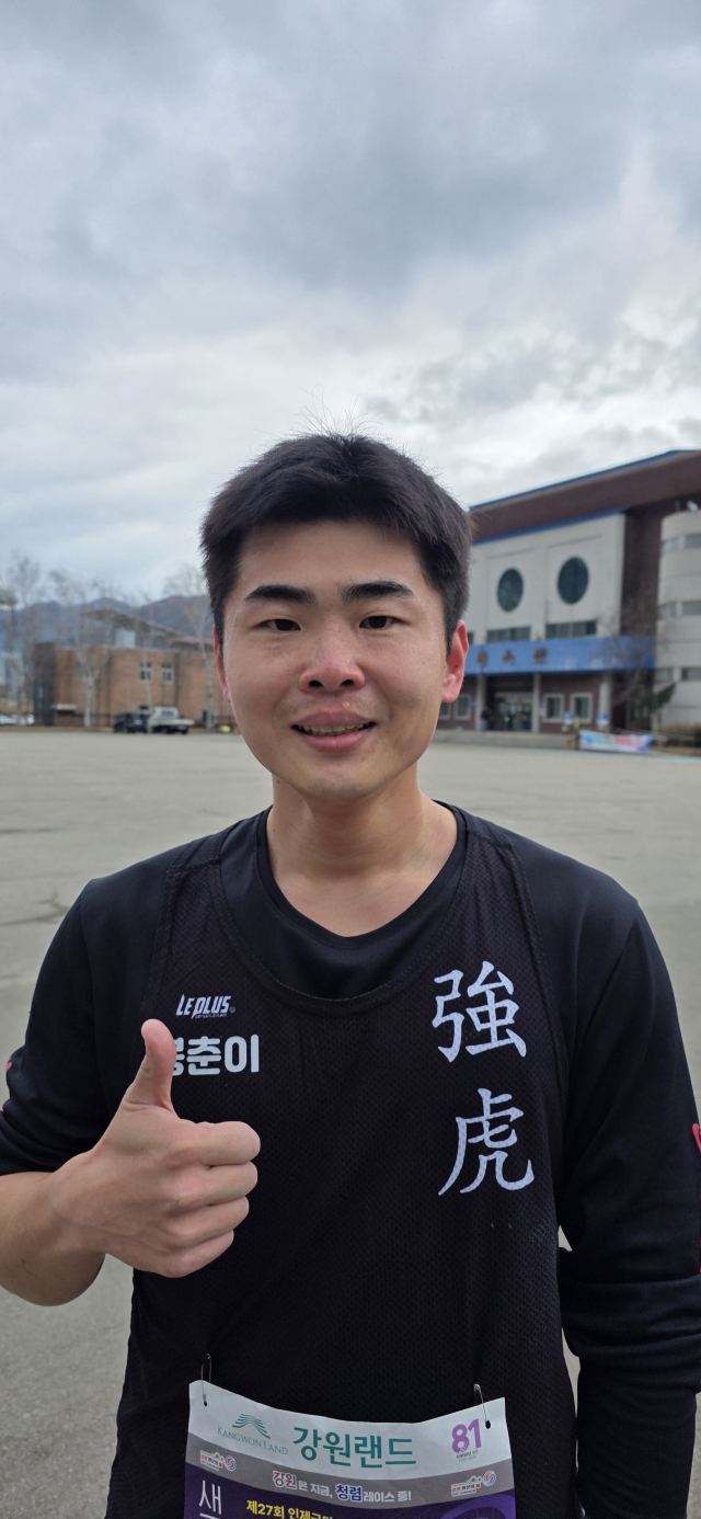 인제군 육상동호회 ‘강호’소속으로 삼일절 대회에 3년째 출전한 그는 24년에 2등, 25년 3등에 이어 올해 드디어 우승을 차지하며 기쁨을 더해.