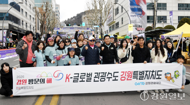강원관광재단(대표이사: 최성현)은 지난 1일 강원일보 주최 ‘제67회 3·1절 단축마라톤대회 및 제27회 시·군민 건강달리기대회’가 열린 강원일보 본사 앞에서 ‘2026 강원 방문의 해’ 홍보 부스를 운영하며 강원 관광을 알렸다.