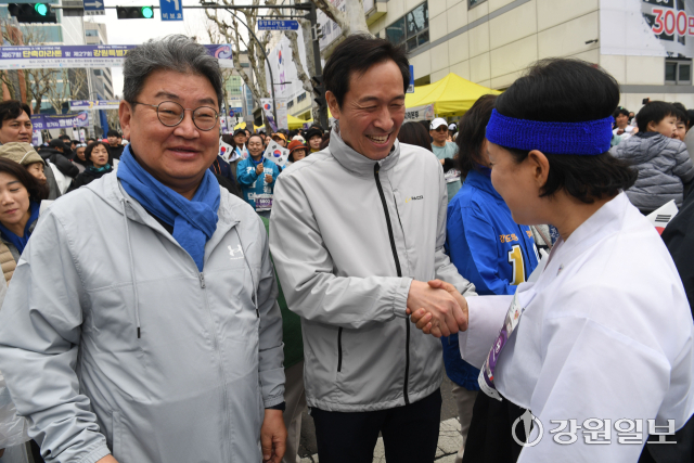 우상호 전 청와대 정무수석이 지난 1일 강원일보사 주최 ‘제67회 단축마라톤 및 제27회 강원특별자치도민 건강달리기대회’ 시총에 참여해 “나도 출발하는 마음으로 함께했다”고 소감을 밝혔다.
