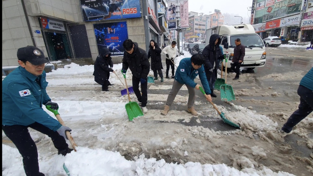 [포토뉴스]25㎝ 폭설 태백…제설작업 한창