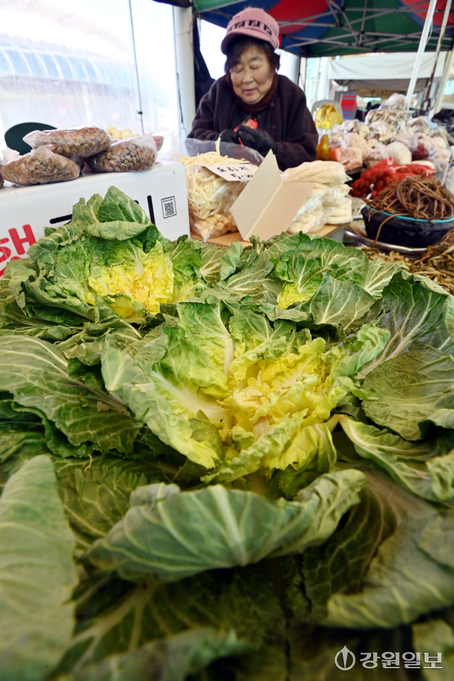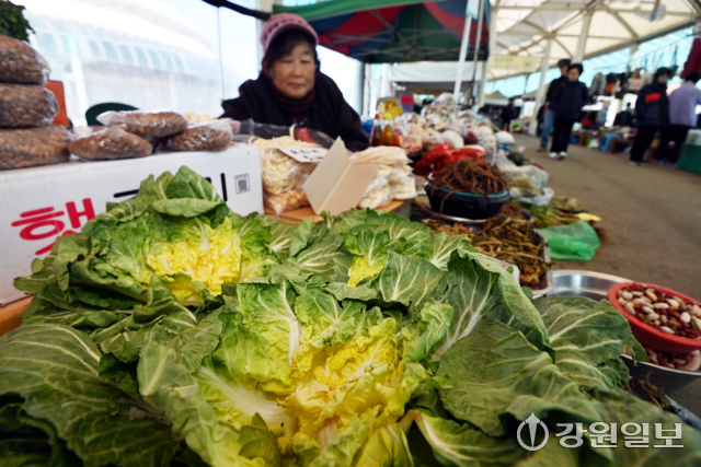사회관계망서비스(SNS)를 중심으로 '봄동비빔밥'이 인기를 끌고 있는 가운데 4일 춘천 샘밭시장에서 봄동이 판매되고 있다. 임도혁기자