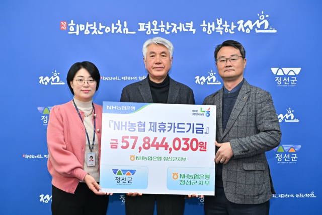 NH농협은행 정선군지부(지부장:김보성)가 5일 정선군청 군수 집무실에서 ‘NH농협 제휴카드 적립기금’ 5,784만 4,030원을 최승준 정선군수에게 전달했다. 제휴카드 적립기금은 지난해 사용한 법인카드, 보조금카드, 공무원복지카드 사용실적에 따라 발생한 수익으로 군은 이를 세입예산으로 편성해 지역발전과 복지증진 등에 사용할 예정이다.