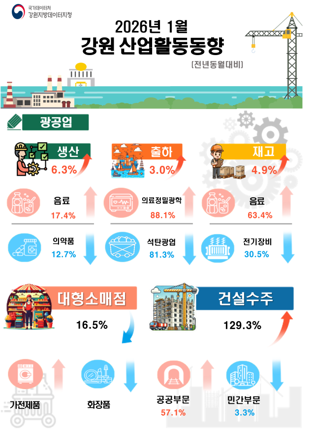 강원지역 광공업 생산과 건설수주가 증가했다.