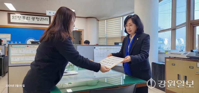 김지숙 춘천시의회 문화복지위원장은 5일 춘천시선거관리위원회를 찾아 6·3 지방선거 춘천시의원 다선거구 예비 후보로 등록했다.