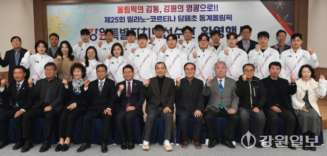 2026년 밀라노·코르티나담페초 동계올림픽 강원특별자치도 선수단 환영식이 6일 강원체육회관에서 김진태 지사, 신경호 교육감, 양희구 도체육회장 등 내빈들과 선수단, 임원 등이 참석한 가운데 열렸다.
