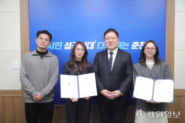 현준태 춘천 부시장은 6일 시청 화상회의실에서 글로벌 춘천 장학사업(GCS)에 선정된 신입생 3명에게 장학 증서를 전달했다.