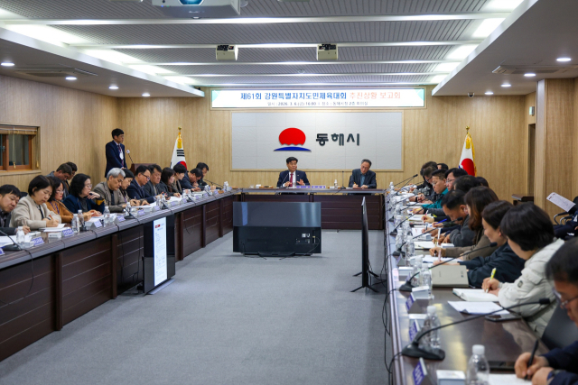제61회 도민체전 추진상황 보고회가 지난 6일 심규언 동해시장 등이 참석한 가운데 동해시청 본관 2층 회의실에서 열렸다.