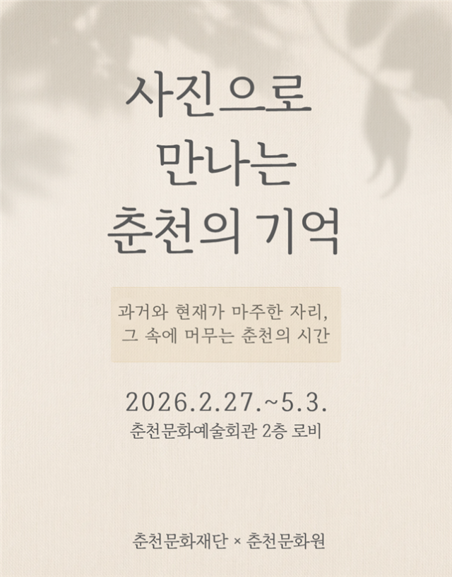 박종훈 춘천문화재단 이사장은 “이번 전시는 과거를 단순히 회고하는 자리가 아니라, 오늘의 춘천을 다시 바라보는 시간”이라며 “춘천문화예술회관 로비가 시민 각자의 기억을 떠올리고 서로의 추억을 나누는 열린 공간이 되기를 기대한다”고 밝혔다.