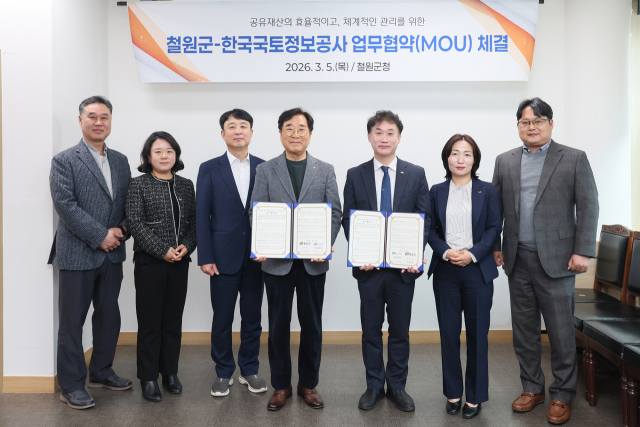 【철원】철원군과 한국국토정보공사 강원지역본부가 지난 5일 군청에서 공유재산 정밀 실태조사를 위한 업무협약을 체결했다. 이번 협약은 공유재산을 체계적으로 관리하고 효율적으로 활용 할 수 있도록 협력체계를 강화하기 위해 마련됐다.