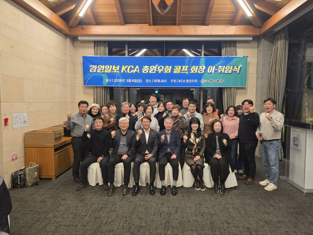 강원일보 CEO 아카데미(KCA) 총원우회 골프회장 이·취임식이 지난 6일 춘천 라데나 골프클럽에서 김영래 강원일보 전무이사, 최대식 KCA총원우회장 등이 참석한 가운데 열렸다.