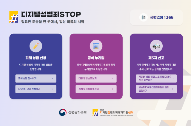 누리집은 피해 대응 요령과 지원 절차를 한 번에 확인할 수 있도록 구성됐으며, 피해자뿐 아니라 제3자도 불법촬영물 등을 한 곳에서 신고할 수 있게 된다. 신고 창구의 일원화로 디지털성범죄 실태조사 역시 가능해졌다.