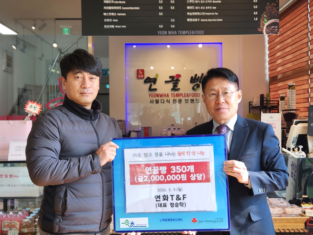 연화T&F(대표:정승학)는 9일 매장에서 속초시 노학동지역사회보장협의체 특화사업인 ‘둘레 한 상 나눔’ 사업을 통해 연말까지 200만원 상당의 연꿀빵 350개를 노학동지역 취약계층에 전달하기로 했다.