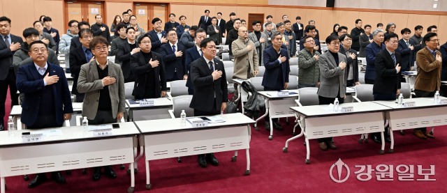 2026년 강원국방벤처센터 협약식 및 간담회가 9일 강원대 60주년 기념관 국제회의실에서 김광래 강원자치도 경제부지사, 현준태 춘천부시장과 기업대표들이 참석한 가운데 열렸다. 임도혁기자