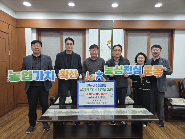 【철원】동철원농협(조합장:장명)이 10일 조합장실에서 '2026년 조합원 대학생 자녀 장학금 전달식'열 열고 지역 인재 육성에 힘을 보탰다.