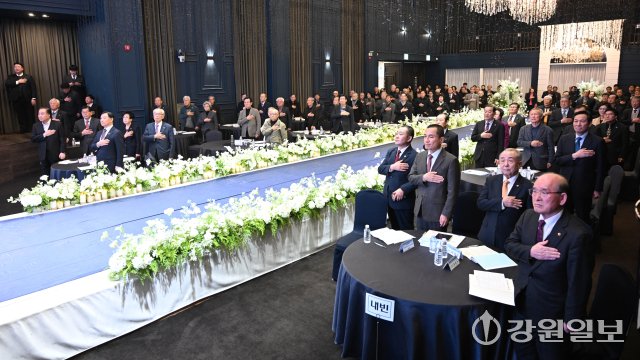 (사)대한노인회 강원자치도연합회 2026년 정기총회가 10일 춘천 미래컨벤션웨딩홀에서 이건실 도연합회장을 비롯한 회원들과 김진태 도지사, 김시성 도의장, 더불어민주당 우상호 도지사 예비후보 및 내빈들이 참석한 가운데 열렸다.