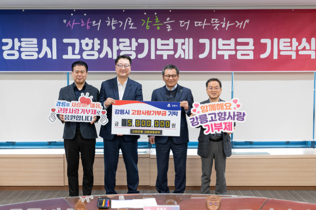 신한은행 강원영동본부(본부장:김창범)는 12일 강릉시청 8층 시민사랑방에서 강원영동본부 직원들이 자발적으로 뜻을 모아 마련한 고향사랑기부금 500만원을 강릉시에 기탁, 지역과 함께하는 금융기관으로서의 의미를 더했다.