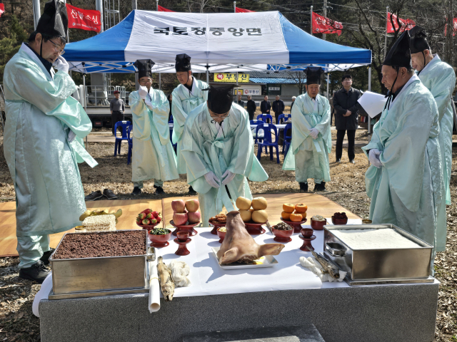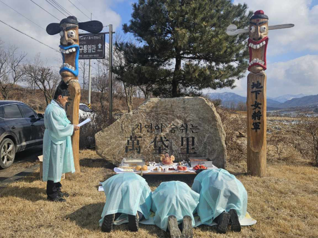 【양구】양구군 국토정중앙면과 해안면은 지난 13일 마을의 안녕과 풍년, 주민들의 건강과 화합을 기원하는 ‘장승제례’를 봉행했다.