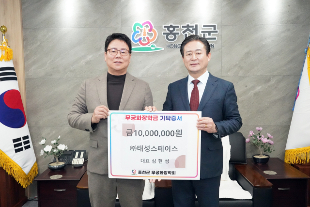(주)태성스페이스(대표:심현성)는 17일 홍천군청에서 지역 인재 육성을 위한 무궁화 장학금으로 1,000만원을 기탁했다.