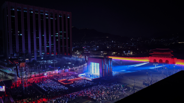 서울시에 따르면 이날 오후 8시 기준 광화문과 덕수궁 인근에는 4만∼4만2천명이 모였다. 인구 혼잡도는 ‘붐빔’ 수준으로 집계됐다. 경찰 비공식 추산도 4만2천명이다. 광장 내 공식 좌석은 총 2만2천석 규모로, A구역(스탠딩)·B구역(지정석)·C구역(추가 좌석)으로 운영됐으며, 좌석을 확보하지 못한 관람객들은 광장 주변에서 공연을 지켜봤다.