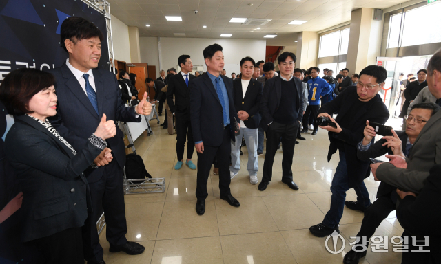 강연에 앞서 김도균 도당위원장은 "김용 전 부원장은 윤석열 정치검찰이 이재명 죽이기 공작을 할 때 최전선에서 정치검찰에 꿋꿋이 맞선 분"이라며 "강원 지역은 어려운 곳이지만 6·3지선에서 강원이 승리해서 12·3내란이 완전히 종식됐다는 걸 도민들께 보여드리고 강원지역의 변화와 혁신을 만들 수 있도록 노력하겠다"고 했다.