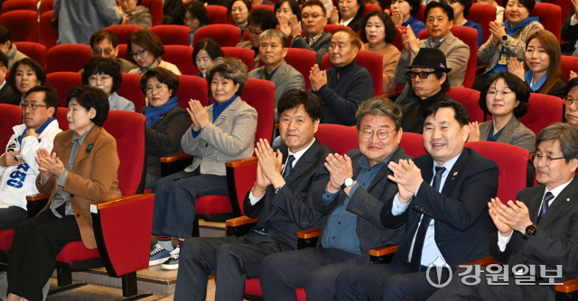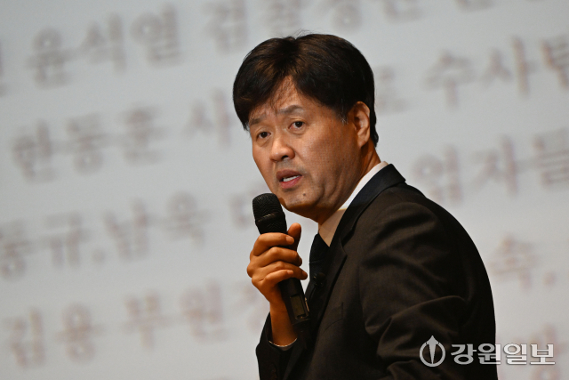 김용 전 민주연구원 부원장 강원 초청 강연회가 21일 강원대 춘천캠퍼스 실사구시관에서 김도균 더불어민주당 강원자치도당위원장, 유정배 춘천·철원·화천·양구을 지역위원장 등이 참석한 가운데 '김용이 바라본 이재명 대통령의 혁신과 성공'을 주제로 열렸다.