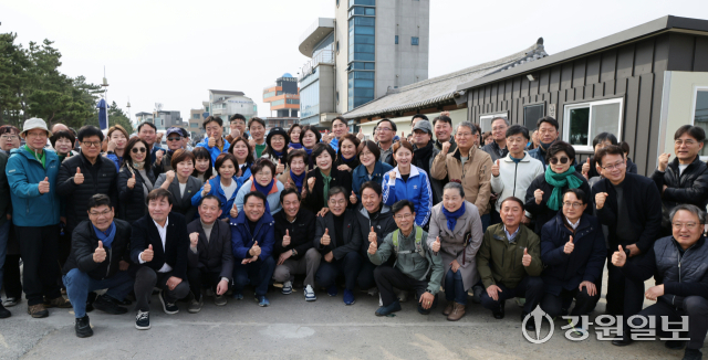 우 후보는 22일 이 전 지사와 강릉바우길 남항진항~안목해변 구간을 걸으며 시민들과 지역 현안을 공유했다.