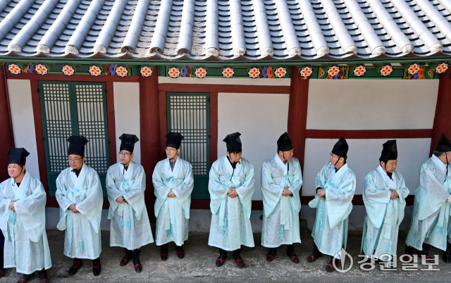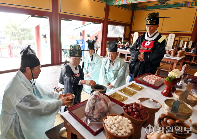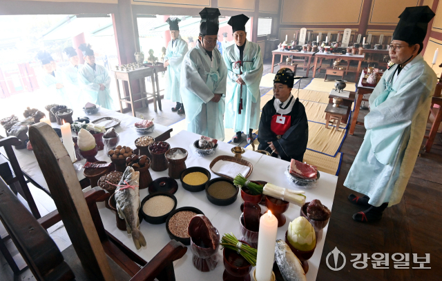춘천향교 춘기석전대제가 24일 향교 대성전에서 육동한 시장, 장진호 교육장, 김상호 전교를 비롯한 내빈과 유림들이 참석한 가운데 열렸다. 임도혁기자
