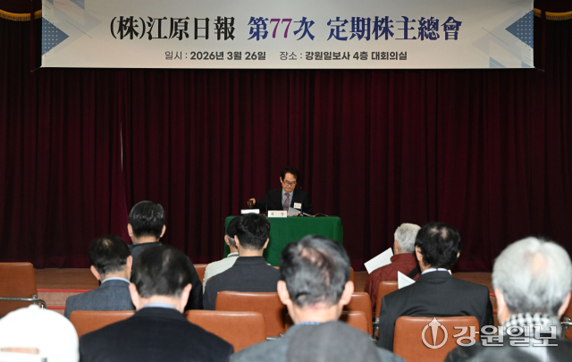 ◇(주)강원일보는 26일 본사 대강당에서 제77차 정기 주주총회를 열고 2025년도 사업 및 감사보고를 승인하고 주요 안건을 의결했다. 박승선기자