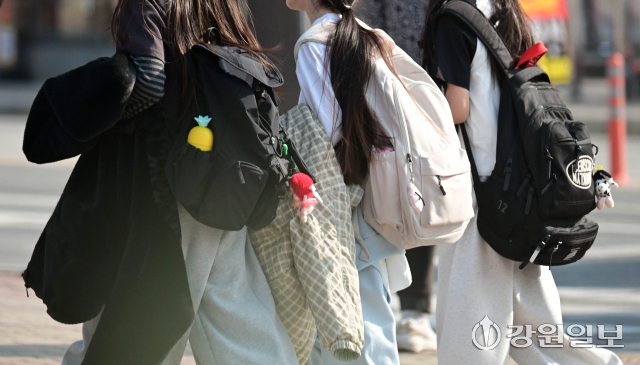 춘천 낮 최고기온이 23도까지 오른 26일 춘천시 석사동에서 두꺼운 외투를 벗고 얇은 옷을 입은 시민들이 걷고 있다.