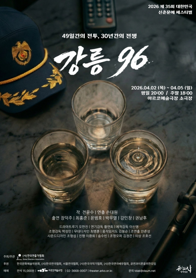 2026 강원일보 신춘문예 희곡 당선작인 전윤수 작가의 ‘강릉96’이 다음달 2일부터 5일까지 서울 대학로 아르코예술극장 소극장에서 열리는 ‘제35회 대한민국 신춘문예 페스티벌’ 무대에 오른다. 지난 26일 개막해 다음달 5일까지 이어지는 대한민국 신춘문예 페스티벌은 전국 8개 신문사와 한국극작가협회의 신춘문예에서 당선된 희곡 작품을 연극으로 선보인다.