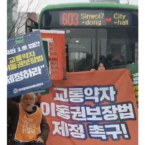 출근길 전철역에서 시위를 벌여온 전국장애인차별철폐연대(전장연)가 이번에는 서울 서대문구의 한 버스정류장에서 시위에 나서 일대 출근길 교통이 한때 지체됐다.