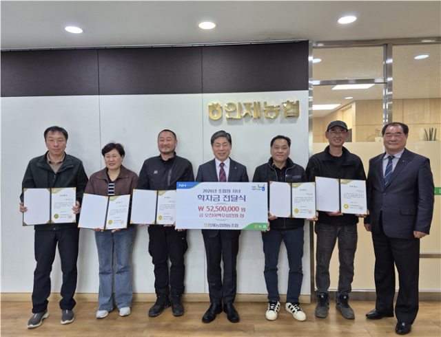 인제농협(조합장:정성빈)은 30일 농협 조합장실에서 조합원들의 대학생·고등학생 자녀에게 총 5,250만원의 학자금을 전달했다.