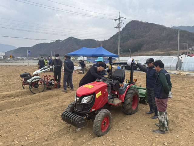 평창군농업기술센터는 30일 평창군 농기계임대사업소 대화지소에서 지역 농업인의 농기계 활용 능력을 높이고 안전한 영농 환경을 조성하기 위한 소형농기계 사용 실습 교육을 진행했다.
