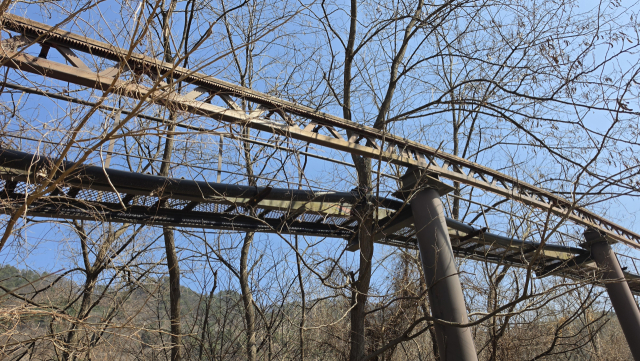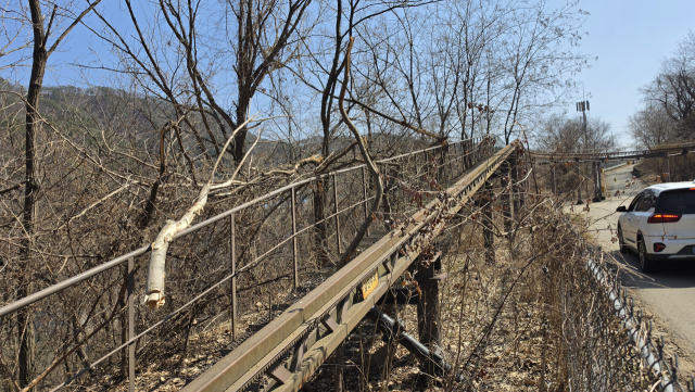 ◇국비와 지방비 등 22억여 원의 혈세가 투입된 ‘화천댐 인공어도(모노레일형 어도)’가 가동 중단 12년째 고철 덩어리로 방치되고 있다. 최근 화천댐 하류에서 상류로 연결돼 있는 모노레일 사이로 12년째 나무가 자라있는 등 그동안 관리가 전혀 안되고 있음을 보여주고 있다. 화천=이무헌기자◇국비와 지방비 등 22억여 원의 혈세가 투입된 ‘화천댐 인공어도(모노레일형 어도)’가 가동 중단 12년째 고철 덩어리로 방치되고 있다. 최근 화천댐 하류에서 상류로 연결돼 있는 모노레일 사이로 12년째 나무가 자라있는 등 그동안 관리가 전혀 안되고 있음을 보여주고 있다. 화천=이무헌기자