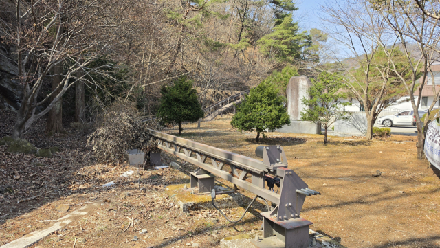 ◇국비와 지방비 등 22억여 원의 혈세가 투입된 ‘화천댐 인공어도(모노레일형 어도)’가 가동 중단 12년째 고철 덩어리로 방치되고 있다. 사진은 화천댐 하부에서 상부로 올라가는 길을 가로질러 설치돼 있는 모노레일 모습. 화천=이무헌기자◇국비와 지방비 등 22억여 원의 혈세가 투입된 ‘화천댐 인공어도(모노레일형 어도)’가 가동 중단 12년째 고철 덩어리로 방치되고 있다. 사진은 상부 종점 모습. 화천=이무헌기자◇국비와 지방비 등 22억여 원의 혈세가 투입된 ‘화천댐 인공어도(모노레일형 어도)’가 가동 중단 12년째 고철 덩어리로 방치되고 있다. 상부 종점에서 받은 하류의 물고기를 상류로 보내는 검은 색 송어관이 보인다. 화천=이무헌기자