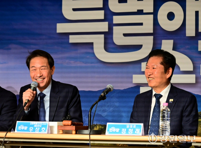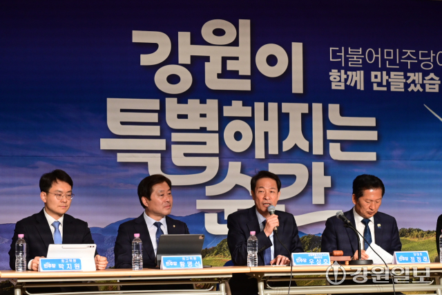 정청래 당대표, 우상호 강원지사 예비후보,김도균 도당위원장 등 참석