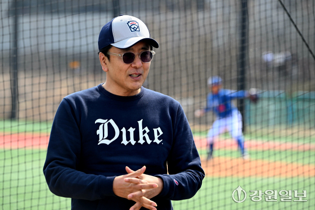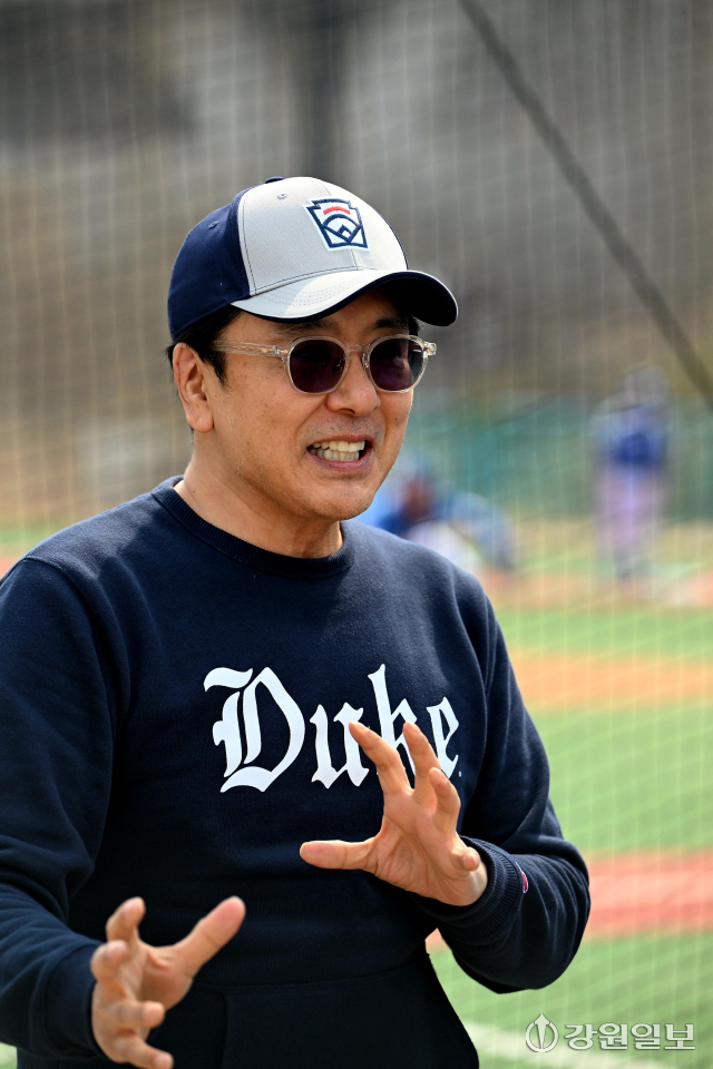 김승우 한국리틀야구연맹 회장이 배우라는 타이틀을 내려놓고 ‘야구인’으로 그라운드에 섰다. 지난 3일 강원일보 주최로 춘천 송암리틀야구장과 고구마섬 1, 2구장에서 막을 올린 ‘2026년 제3회 춘천시장기 전국리틀야구대회’ 경기장을 찾아 선수단과 심판진을 격려했다. 그는 어린 선수들의 눈빛 속에서 한국 야구의 미래를 읽으며 “리틀야구의 위상을 반드시 끌어올리겠다”는 강한 의지를 드러냈다.