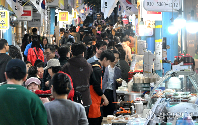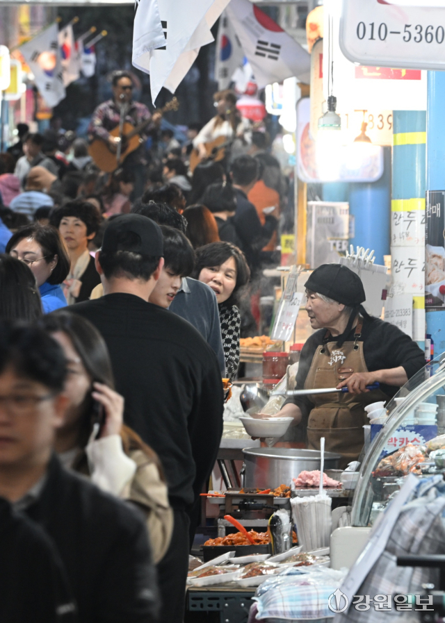 봄을 맞아 각 지역과 마을을 대표하는 야시장이 잇달아 개장하고 있다. 지난 3일 후평시장에서 개장한 후평어울야시장이 손님들로 북적이고 있다. 박승선기자