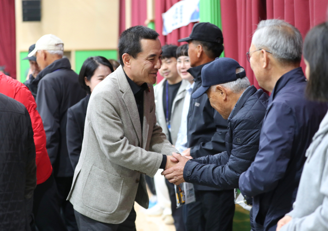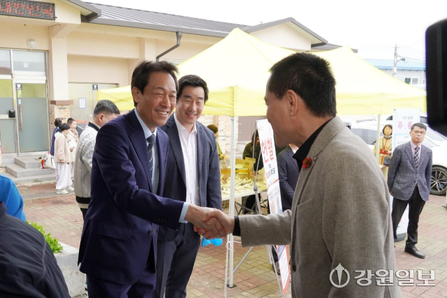 김진태 강원지사와 더불어민주당 우상호 강원지사 예비후보가 도청사 이전지인 춘천 동내면에서 대면해 눈길을 끈다. 두 사람은 지난 4일 동내초교에서 열린 제19회 춘천 동내면 면민의 날 화합 큰 잔치 행사에 나란히 참석했다.