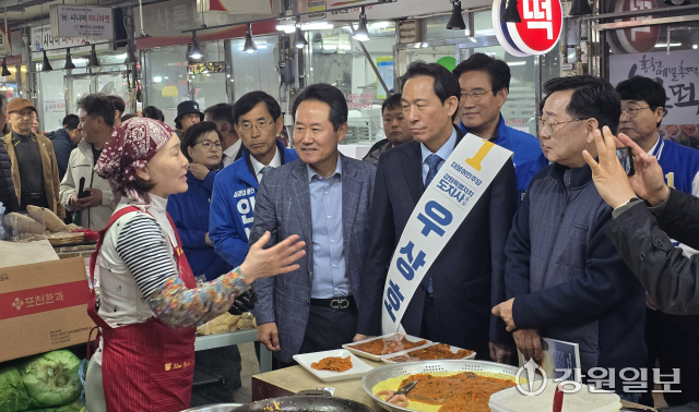 앞서 이날 오전에는 홍천중앙시장 및 전통시장을 방문했다. 점포 상인들을 일일이 만나며 인사를 나눴다.