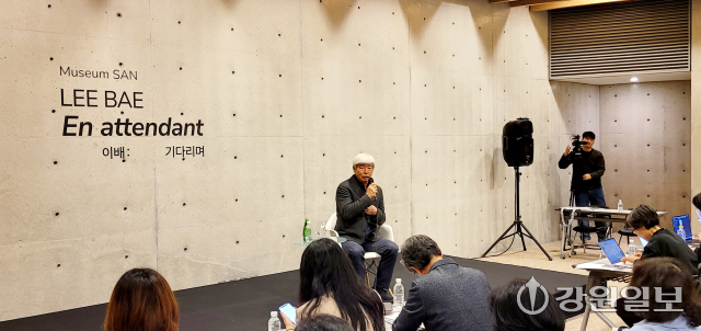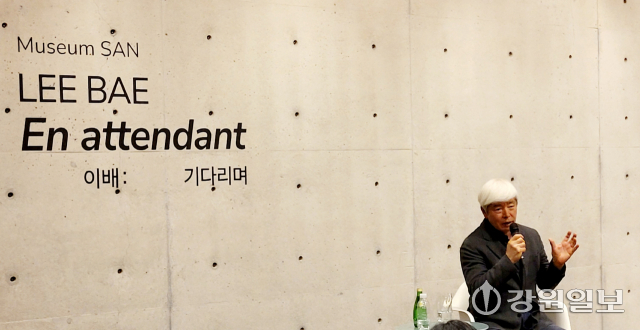 '숯의 작가'로 불리는 세계 최정상급 거장인 이배(70) 작가가 원주를 찾았다. 자신의 개인전 'En attendant: 기다리며'를 앞두고 6일 뮤지엄 SAN에서 기자간담회를 가졌다.
