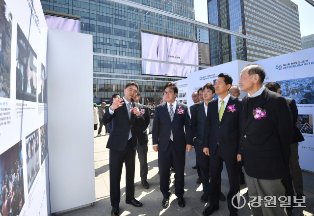 7일 서울 광화문광장 놀이마당에서 열린 제62회 한국 보도사진전 개막식에서 이호재 한국사진기자협회장, 우원식 국회의장, 오세훈 서울시장, 이준석 개혁신당 대표 등 내빈들이 제62회 한국보도사진전 대상을 수상작을 관람하고 있다. 2026. 04.07 사진공동취재단7일 서울 광화문광장 놀이마당에서 열린 제62회 한국 보도사진전 개막식에서 이호재 한국사진기자협회장, 우원식 국회의장, 오세훈 서울시장, 이준석 개혁신당 대표 등 내빈들이 제62회 한국보도사진전 대상을 수상작을 관람하고 있다. 2026. 04.07 사진공동취재단시민들이 7일 서울 종로구 광화문 광장에서 열린 제62회 한국보도사진전 ‘오늘의 보도사진, 내일의 역사가 되다’에서 작품을 관람하고 있다. 2026.4.7 사진공동취재단