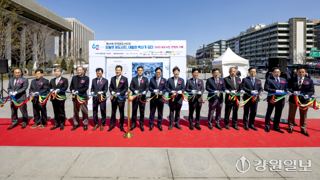 7일 서울 종로구 광화문 광장에서 열린 제62회 한국보도사진전 ‘오늘의 보도사진, 내일의 역사가 되다’ 개막식에서 참석자들이 개막을 알리는 커팅식을 하고 있다. 왼쪽부터 박정우 캐논코리아 대표, 김형진 한국편집기자협회장, 염영남 뉴시스 대표이사 사장, 김효재 한국언론진흥재단 이사장, 이규연 청와대 홍보수석, 오세훈 서울시장, 이호재 한국사진기자협회장, 우원식 국회의장, 이준석 개혁신당 당대표, 더불어민주당 대변인인 박해철 의원, 박종현 한국기자협회장, 장문기 한국보도사진가협회장, 최연송 한국영상기자협회장, 정해환 니콘이미징코리아 대표, 김홍석 소니코리아 본부장. 2026.4.7. 사진공동취재단