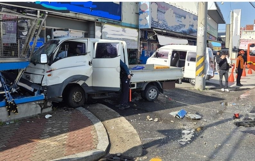 10일 오후 3시 28분께 경북 경산시 하양읍 금락리에서 포터 화물차가 상가 앞 수족관으로 돌진했다.