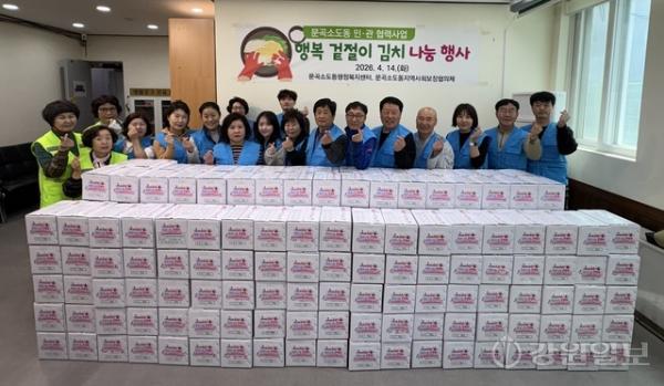 태백 문곡소도동행정복지센터(동장:이문형)·문곡소도동지역사회보장협의체는 14일 동 행정복지센터에서 민·관 협력사업으로 ‘행복 겉절이 김치 나눔 행사’를 진행했다. 이날 협의체 위원, 공무원 등 20여명은 직접 김치를 담그고 상자에 포장했다. 마련된 김치 200상자는 지역 내 독거어르신, 저소득층 등에 전달될 예정이다.